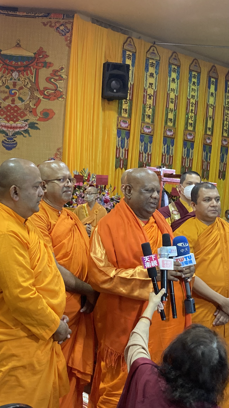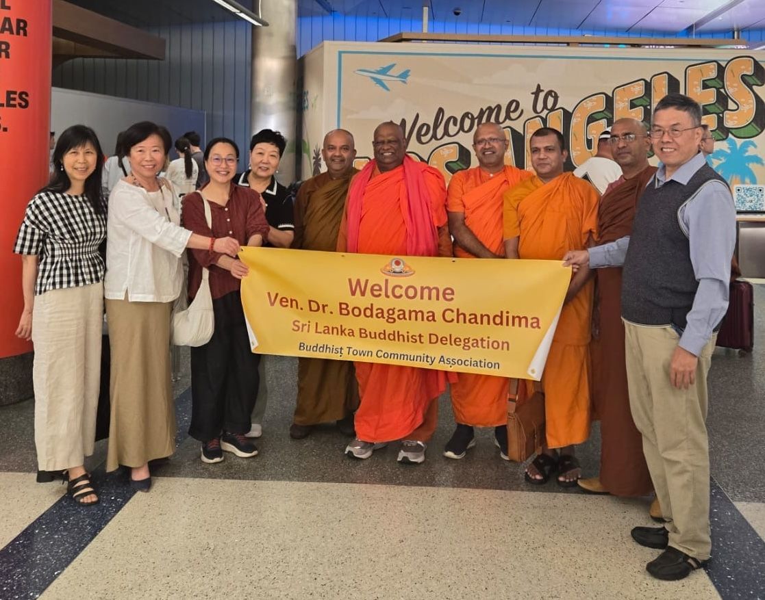 On May 28, Venerable Chandima, founder of the Nagananda International Institute for Buddhist Studies in Sri Lanka, led a delegation of seven, including five senior monastic elders and two lay practitioners, to Los Angeles to attend the annual event hosted by the World Buddhism Association Headquarters. The five elder monks in the group came from Thailand, India, Taiwan, and Sri Lanka; all are highly learned in Buddhist scriptures and hold positions as professors and abbots. During an interview on May 29, Ven. Chandima recounted when he was received several years ago by H.H. Dorje Chang Buddha III. He shared that during the three-day wait before he was received, he practiced Dharma and prayed nonstop. On the fourth morning, he was informed that His Holiness would receive him. He said that he reported to Buddha Master that he practiced the Metta Sutta and upheld the Four Limitless States of Mind, dedicating everything to benefiting sentient beings without afflictions. His Holiness told him that all his endeavor would succeed as long as he engaged in activities to benefit sentient beings. Also, whenever he needed Buddha Master’s help, he only had to think of Him, and Buddha Master would assist him. Buddha Master gave him a profound empowerment for his future Buddha Dharma propagation endeavors. After that, the construction of the first private Buddhist university in Sri Lanka progressed smoothly, and his Dharma endeavors have been successful in all respects.
