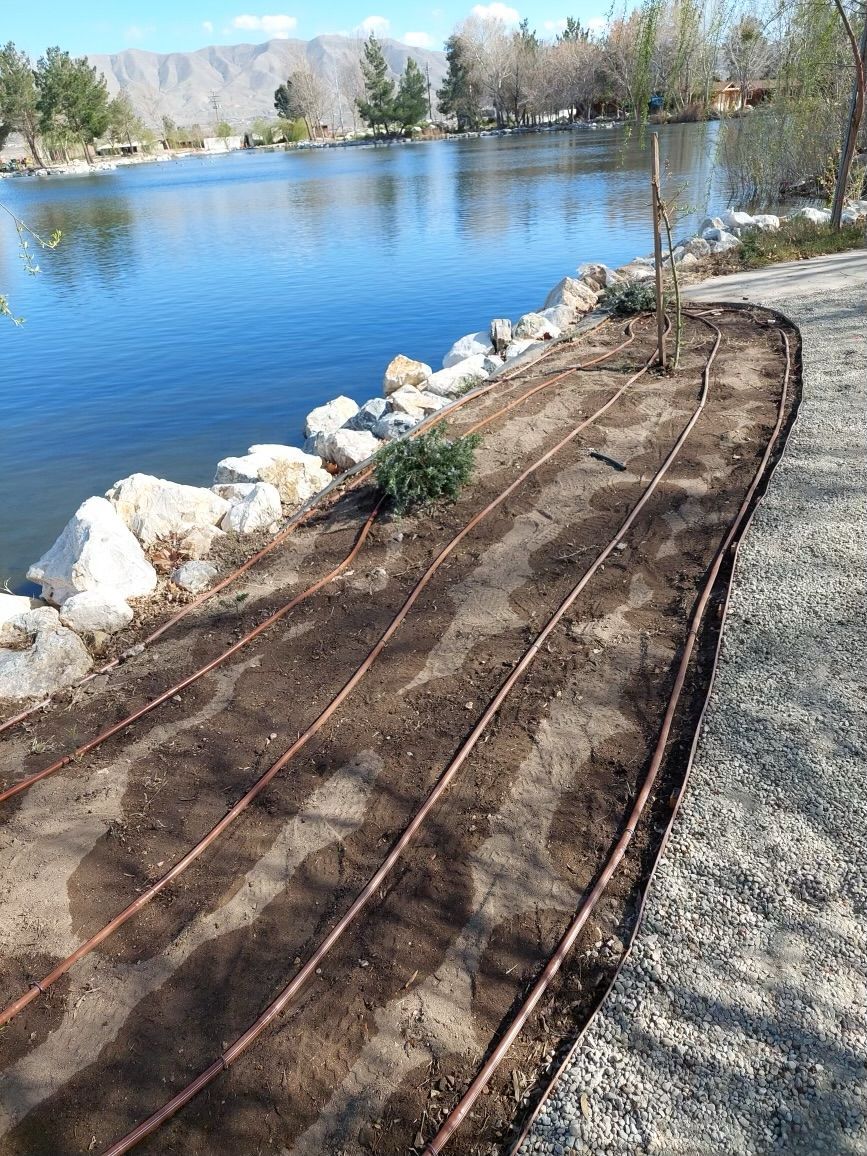 三月新綠的柳枝與怒放的桃花已然在聖天湖畔宣告春天的到來!景觀工程隊經過兩週的努力,於聖天湖西岸塑造了優美的湖畔散步道,並為南北灣湖畔的花圃區設置了完整的澆灌系統,準備展開春季的栽植,水灣花圃將與大草原銜接並為湖邊形成一圈安全保護區。 我們的目標是塑造環湖景觀步道提供給更多的來客享用!近日,鄰居們也相繼來訪,驚見聖天湖美景讚不絕口。更驚嘆於我們所造的美麗環境都將是開放給大眾享用的,而並非如有些人誤以為是佛教徒才能進入的禁區。這樣的來訪對於增進對佛教城的了解及解除誤解將有很大的幫助。其實,可能連很多佛教徒也誤以為佛教城是為了給信眾蓋起富麗堂皇的廟宇,提供信眾優美的“居住”環境而建。並非如此!佛教城的創造是為了提供利益眾生的活動而引領入佛法的世界,富麗堂皇的廟宇是為了接引眾生,美麗的環境也是為了帶給眾生的幸福。這才是佛教城的使命!