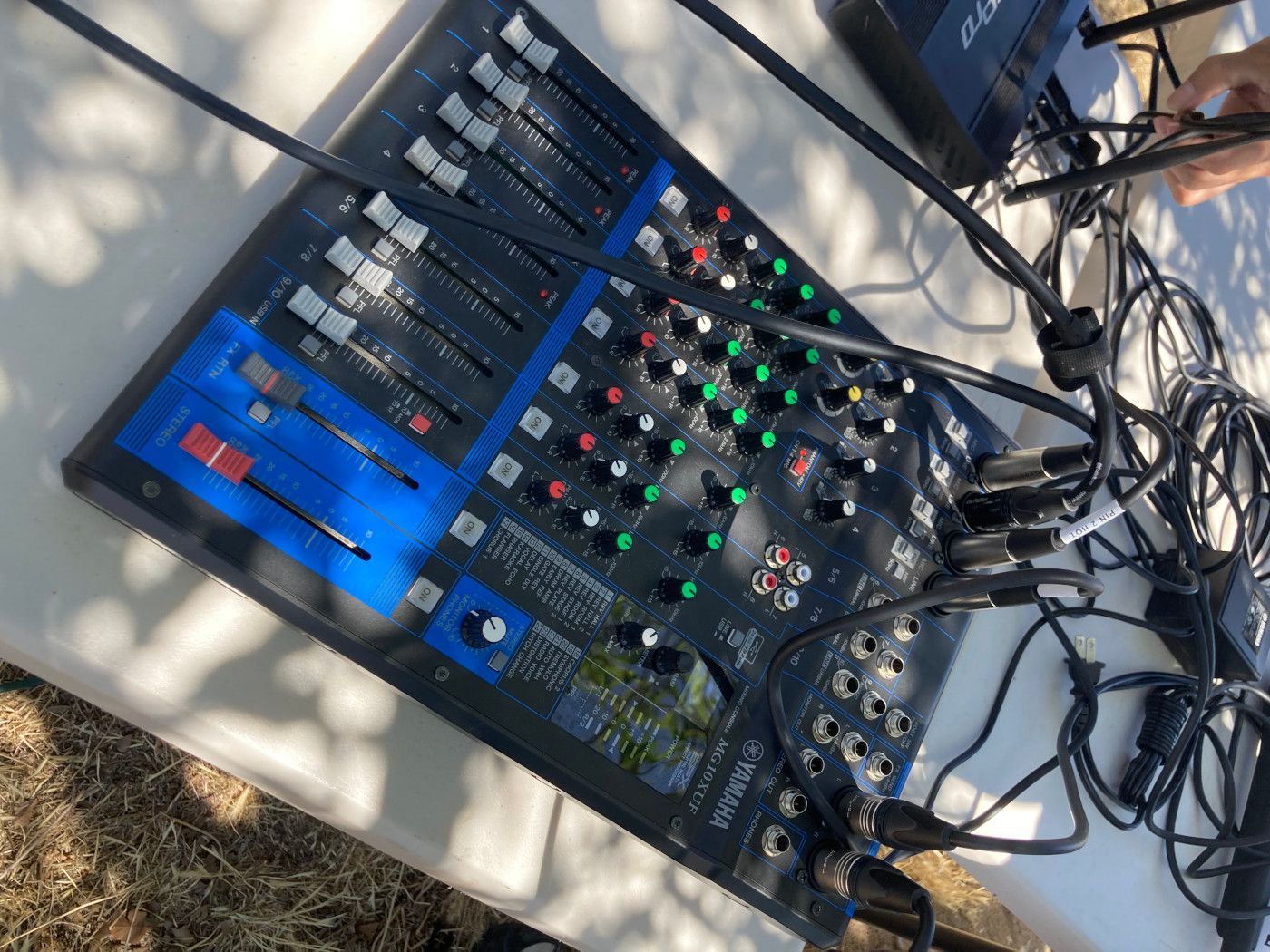 如果不是James清晰而條理的操作解說,那些滿機子上幾十個陌生的鈕孔,簡直就讓人望之生怯。3月中時初初作過一次說明, 5/26日又進一步就6月現場活動佈置,實際架設設備,直接實驗,經過James師兄不急不緩細緻地帶領示範,大家竟然覺得挺快都能上手操作音響了呢!太不可思議了!以前只知道找專家幫忙,現在大家親自體會到了,其實一步一腳印,天下無難事,很快我們都將能上崗了!